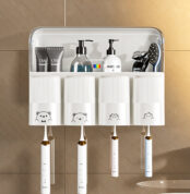 Punch Free Wall Mounted Toothbrush ath For Bathroom With Cups F109