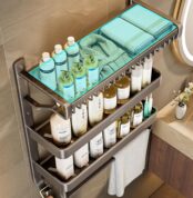 Large Capacity: The size of this bathroom rack is 24.6H*8.66D*22.4W inches. The depth of the top basket is 8.66 inches,